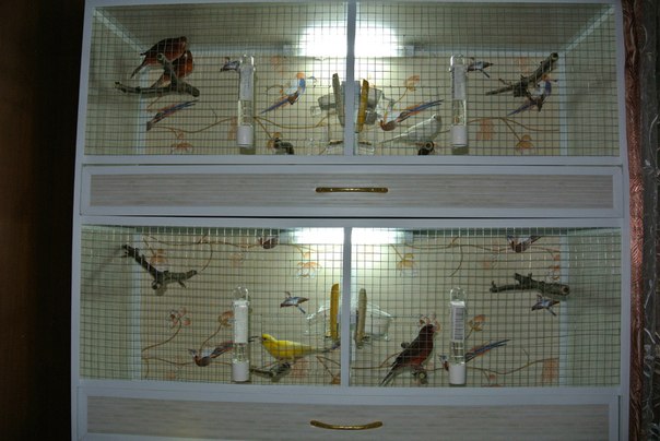 4.У вас кормушки,купалки и гнезда,будут располагаться внутри клетки,а это увеличивает их загрязнение от помета и усложняет доступ к ним.