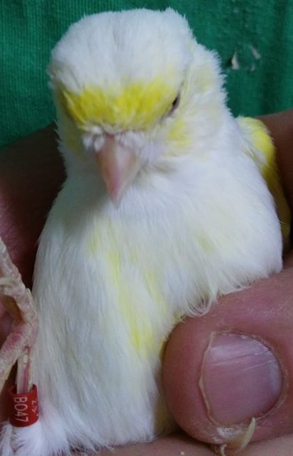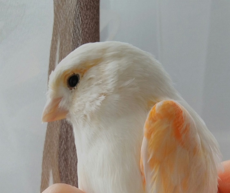 птица с очень четкой, хорошо ограниченной каротиноидной маской.. каротиноидные зоны интенсивны и хорошо выделяются на фоне оперения... оперение вне зон каротиноида белое.. легкий налет каротиноида на спине допустим..