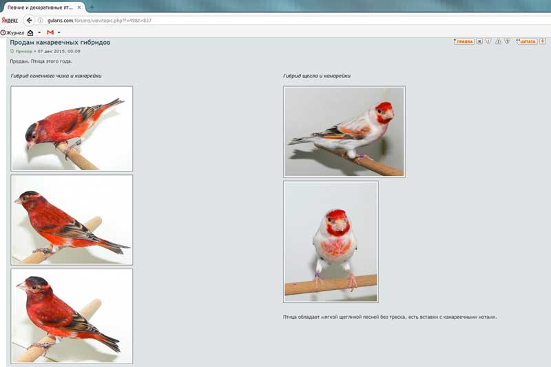 3. А-ля чиж - фотошоп? Какая именно часть видоизменена? Грудь? Ноги? Исходя из Вашей логики, могу предположить, что Вас смущает цвет… птица представлена на фото в нескольких положениях. Как должен выглядеть гибрид огненного чижа и черно-красной канарейки?