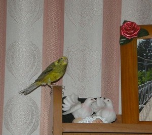 Регина писал(а): Вчера же пробовала выпустить полетать другого кенара нашего (Ромика), так он оказывается плохо видит(наверно возраст сказывается) и поэтому не смог летать, врезался во все подряд пока мы не выключили свет и в темноте обратно его не посадили в клетку на пол. Он конечно был напуган, но в клетке быстро пришел в себя и запелОн теперь скучает по своей Рите и постоянно поет.