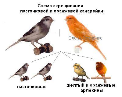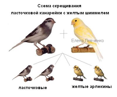 и скрещивание ласточковх с меланиновой линией... во всех случаях скрещивания ласточковой канарейки мы имеем только арлекинов... ни о какой чистопородности или чистокровности речи даже не идет.. ласточковая - это не цвет, это название черно-белого арлекина...