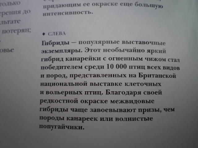 surgeon писал(а): хотелось бы увидеть успехи ( в виде фото) ярых противников гибридизации в выведении или улучшении пород канареек или каких либо других видов одомашненных птиц, ну чтобы понимать, что вы как бы тоже не одним разглагольствованием занимаетесь.