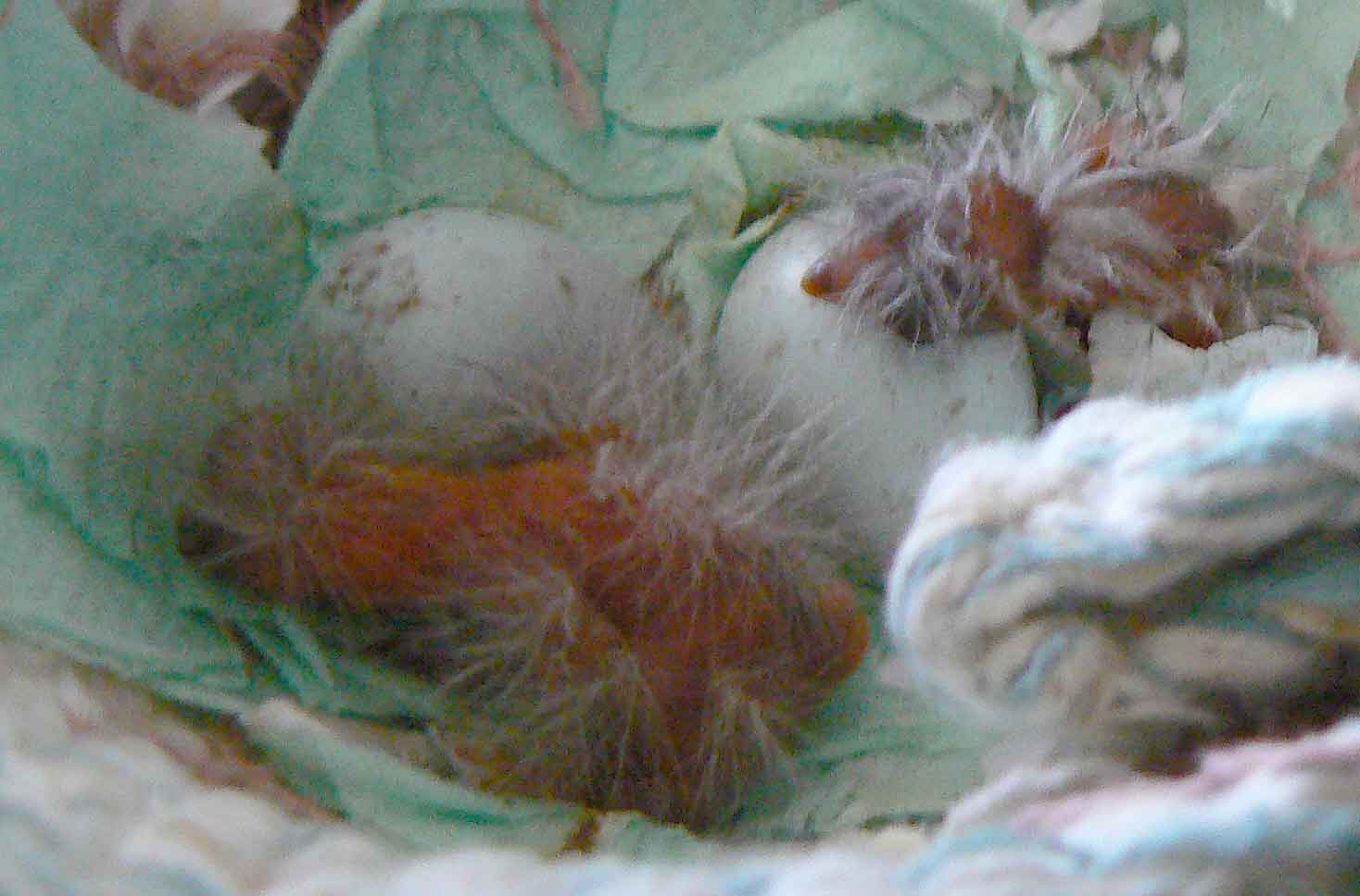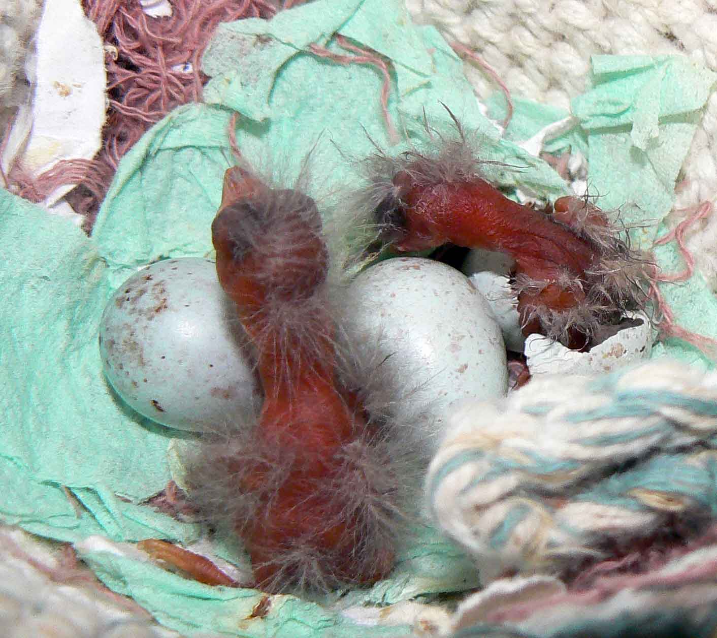 ..., а ему по барабану. Поэтому, когда родилась вся эта орава, им не было тесно, а гнёзда у меня плетёные кокосовые--они не мелкие. А со временем они утаптываются ими и им там комфортно до поры, до времени. А потом, тот кто посильнее и покрепче первый двигается к краю, тем самым освобождая место для своих собратьев. Как правило, это бывают самочки. Я немного подметила, что пацаны дольше задерживаются в гнезде.Недаром ведь говорят--маменькин сынок. По крайней мере я так уже замечала раза три. А какульки я периодически обираю, пока маленькие. Ведь сама знаешь, если это делать позднее, то выпрыгнут из гнезда и рассыпятся по клетке как горох. И хрен обратно посадишь--опять выпрыгивают. Всем народившимся деткам здоровья и всем нам терпения и радостных хлопот !...