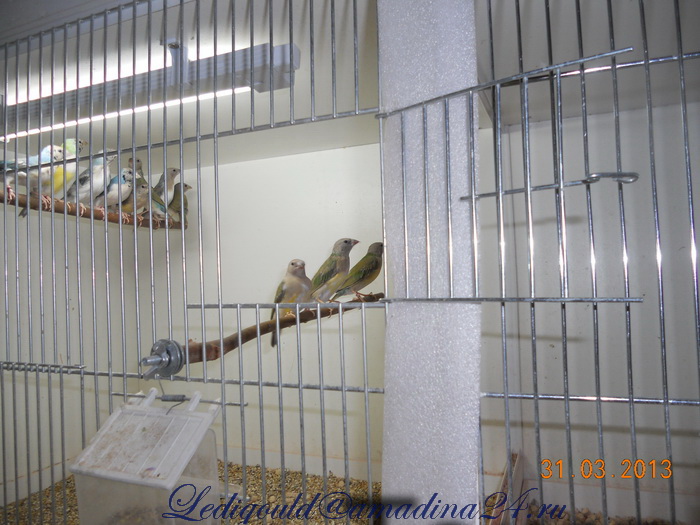 Два синеньких гульденка - это птицы моего разведения, первые синенькие..... гульдята получились крупные и перелинивают значительно быстрее своих природного окраса одногнездков.