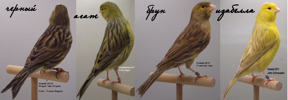 большинство возможных вариантов цветовых окрасов мы рассматривали в теме по систематизации цветных канареек.. там можно с названиями посмотреть и сравнить чем отличается например агат желтый интенсив от агат опал желтого интенсива... и прочее..