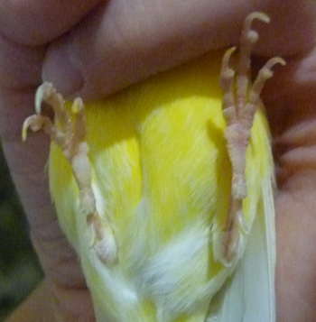 Добрый день. Я два дня назад заметила, что кенар (1.8 года) поджимает правую лапку. внешних признаков повреждения лапки я не заметила, цвет больной лапки чуть бледнее. Он может наступать,но старается этого не делать, когда сидит на больной лапке задний пальчик отодвигает от жердочки. Поведение такое же как и раньше: поет, кушает...