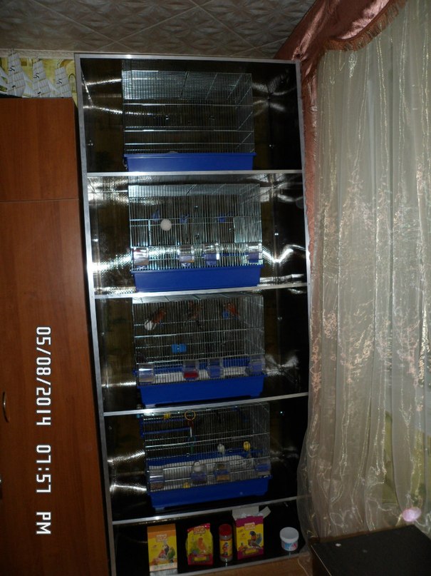 4.У вас кормушки,купалки и гнезда,будут располагаться внутри клетки,а это увеличивает их загрязнение от помета и усложняет доступ к ним.