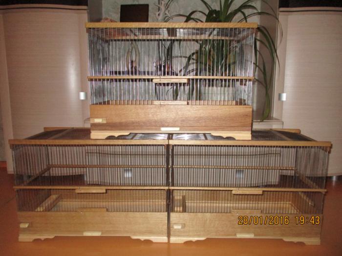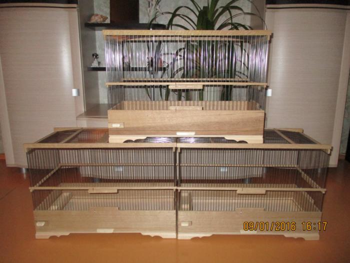 Добрый вечер!Вот предыдущие клетки полностью готовые !Натянут верх и покрыты лаком.Ещё правда добавил две клетки к общему количеству ,это клетка для жаворонка с баней для песка, и клетка для дрозда.