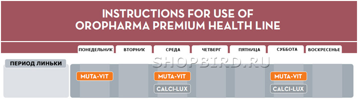 Давайте по схеме, на протяжении всего времени, НО :ii11 только, когда птица не линяет. (в период линьки Muta-Vit, читайте выше).