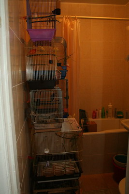 ,не ест и выдёргивает из себя перья.Пришлось расположить их напротив друг друга.
