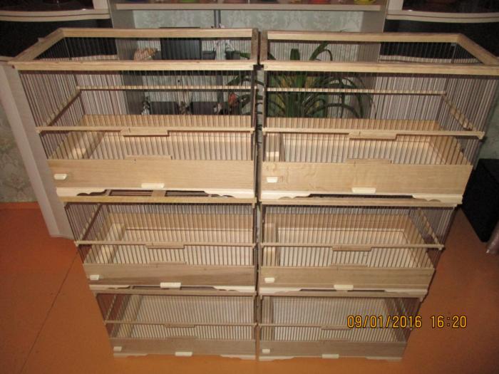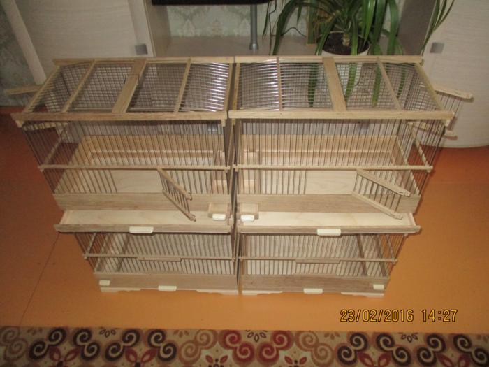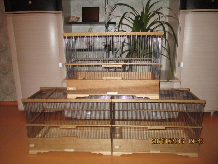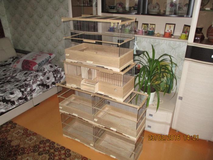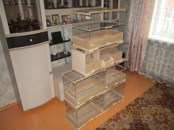 Добрый вечер!Вот предыдущие клетки полностью готовые !Натянут верх и покрыты лаком.Ещё правда добавил две клетки к общему количеству ,это клетка для жаворонка с баней для песка, и клетка для дрозда.