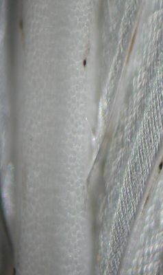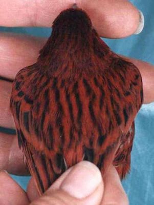 у меланиновых птиц все примерно так же за исключением того, что внутренний слой клетки пера содержит меланиновые гранулы и видя их сквозь корковый слой, содержащий определённый каротиноид, человеческий глаз определяет цвет не как слагаемое из двух цветов (меланинового и каротиноида) а как один цвет. к примеру, глядя на птицу, у которой корковый слой желтый, а внутренний черный, мы воспринимаем ее цвет как зеленый, а птицу, у которой корковый слой бесцветный, а внутренний черный – как серый.