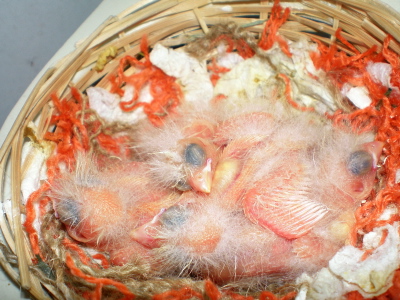 У меня тоже один сидел такой обиженный и гордый дня три, а теперь никого к кормушкам не пускает пока не наестса, причём мальчик... А сегодня наблюдала как четырёхдневные птенцы повыкладывали свои "мордашки" на край гнезда и открыли глаза! :00 Какие-то акселераты! :)