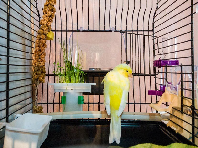 Канарейка объявила бойкот и отказывается купаться.