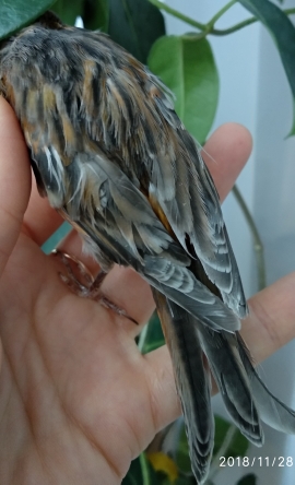 А это птенец на яичном корме для белых и желтке. Линька ещё не началась. Фото для сравнения осенью.
