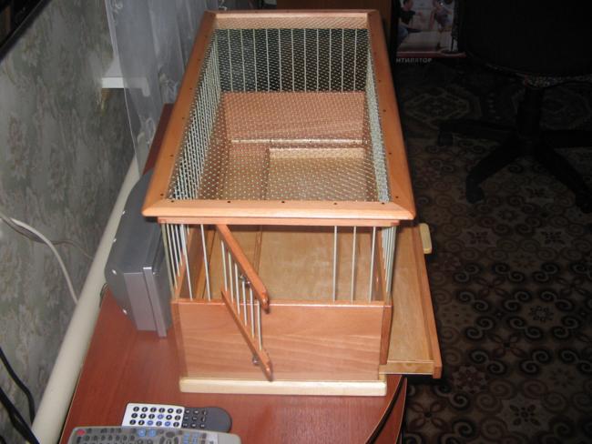 Стенки у клетки сделаны из влагостойкой фанеры.