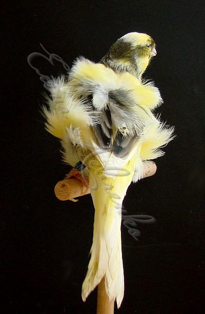 у канареек фризе нет подразделения на интенсив или шиммель.. причина иная форма и жесткость оперения... у фризе не бывает кист... белые рецессивные и мозаики так же не подразделяются на интенсив и шиммель...
