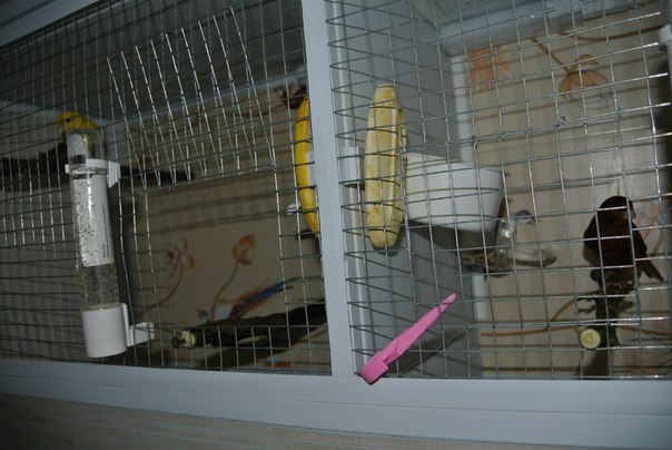 4.У вас кормушки,купалки и гнезда,будут располагаться внутри клетки,а это увеличивает их загрязнение от помета и усложняет доступ к ним.