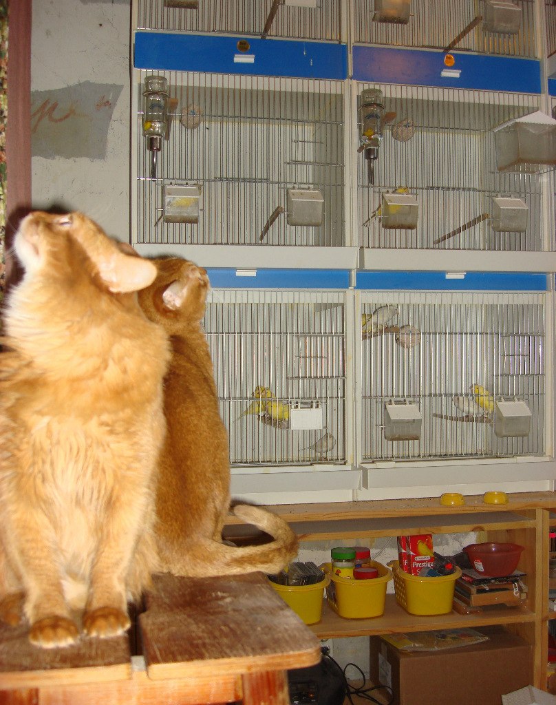 Марисабелька писал(а):Коты уже привыкли,что канарейки на кухне на клетка стоит и не реагируют,а если проявляют интерес,то сразу получают пилюлей.