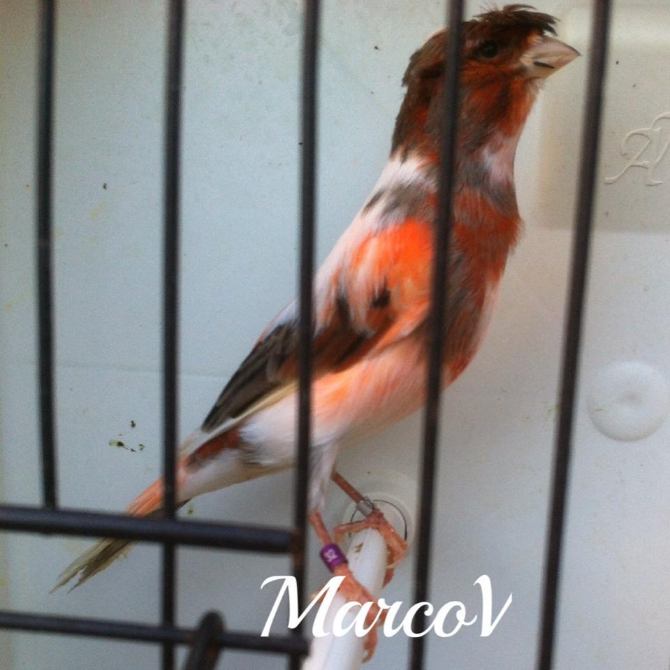 В идеале, в окраске этой канарейки должны сосуществовать и чередоваться 6 цветов: красный или оранжевый, белый, серый, коричневый, черный и бронзовый.