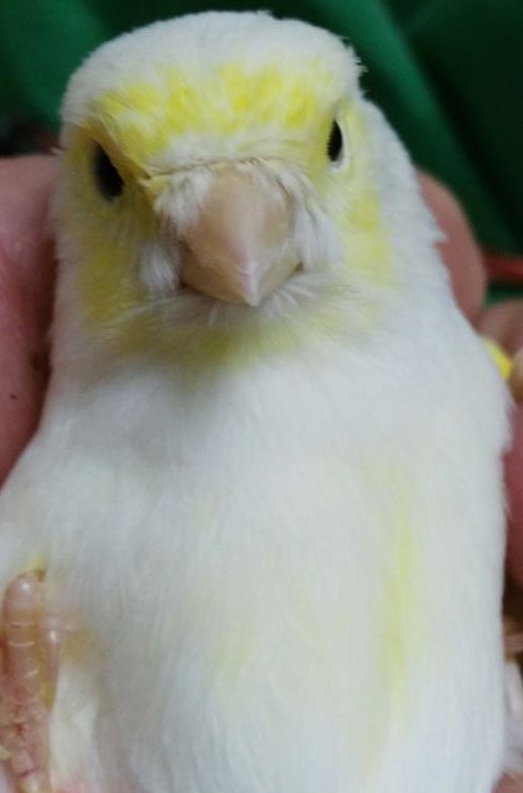 Пристану еще раз. Хотела узнать вот эта самка, красный мозаик (не красила, так овощи и т.д.) тип 1 или плохой 2. Оперение ярко белое. Под глазам в сторону клюва - белое, тень так упала.
