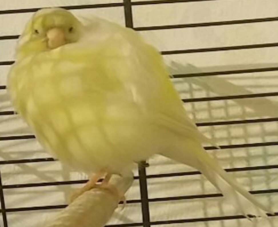 В минувшее воскресенье с утра активная поющая птица вдруг оказалась на дне клетки, нахохлившись с закрытыми глазами, было ей очень плохо. Вызвала врача, пока ждали, грели лампой.