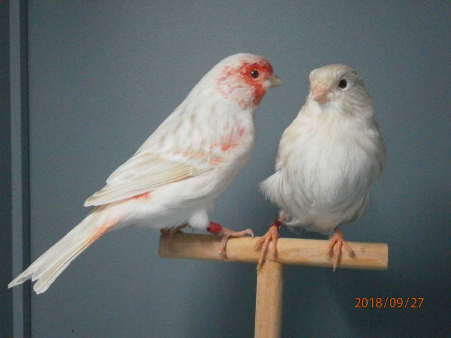 Пара канареек 2018 года. Сатинет красный мозаик тип2 - изабелла красный мозаик тип1.